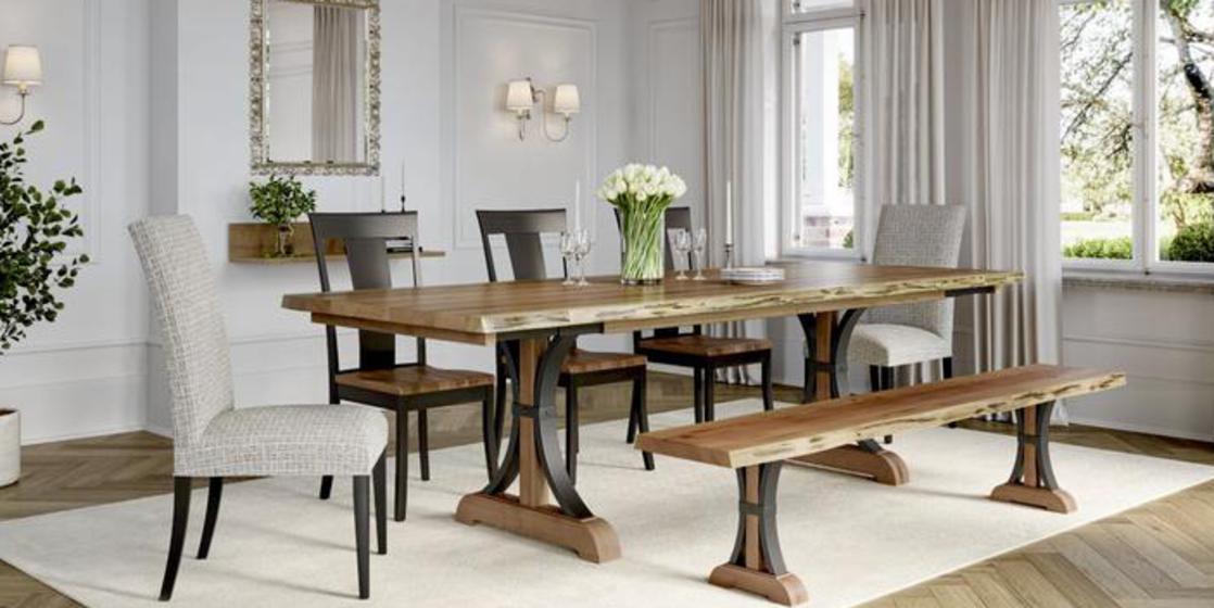 SIMPLY AMISH LIVE EDGE SLAB DINING TABLES, BENCHES, AND OCCASSIONAL TABLES